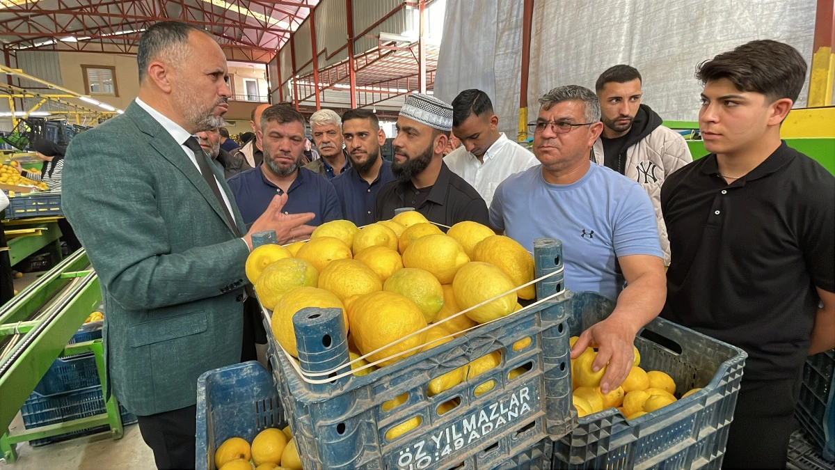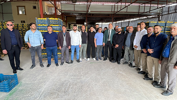 İlçe Başkanı Ali Mustafa Poş, ilahi sanatçısı Celal Karatüre’ ye Erdemli’ nin Sarı altını olarak adlandırılan limon hasadı ve paketlenmesine yönelik bilgiler antardı.