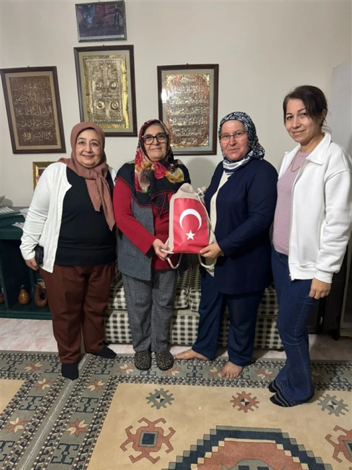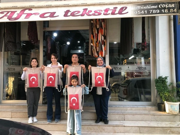 Erdemli Merkez Mahallesi Cumhuriyet Meydanında Afra Tekstil sahibi Bayan Terzisi Müslüme Coşar Özsu Umre’ye giden arkadaşlarına kendi tasarladığı üzerinde Türk Bayrağı motifi olan el yapımı sırt çantalarını hediye ederek bu örnek davranışıyla büyük takdir topladı.