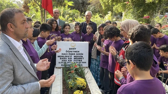 Mersin’in Erdemli ilçesinde Şehit Öğretmen Hacı Ömer Serin adının verildiği Erdemli Şehit Öğretmen Hacı Ömer Serin Ortaokulu öğretmen ve öğrencileri tarafından kabri başında dualarla anıldı.