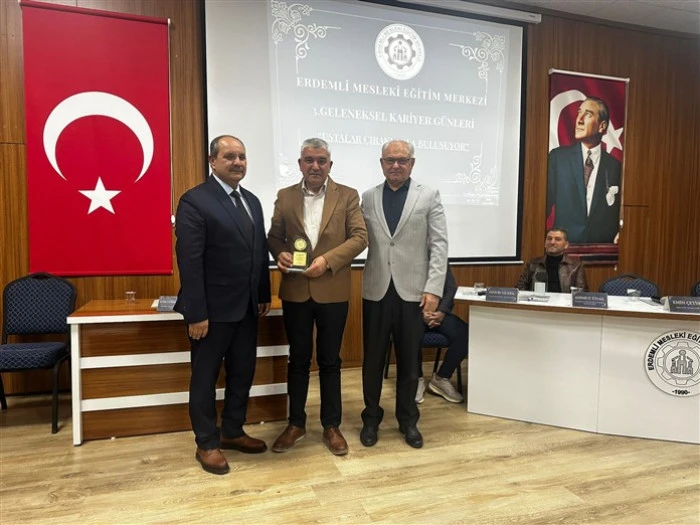 “ Erdemli Mesleki Eğitim Merkezimizin düzenlediği kariyer günleri kapsamında, ilçemizde kendi alanında ustalaşmış, ileri düzeyde iş tecrübesine sahip meslek erbaplarını öğrencilerimizle buluşturuyoruz. Bu buluşmaların oldukça verimli geçtiğine inanıyorum. Öğrencilerimizin gelecekteki meslek hayatları açısından bu tür deneyimlerin çok faydalı olacağını düşünüyoruz. Katılım sağlayan tüm ustalarımıza, idarecilerimize, öğretmenlerimize ve öğrencilerimize teşekkür ediyorum,” ifadelerini kullandı.