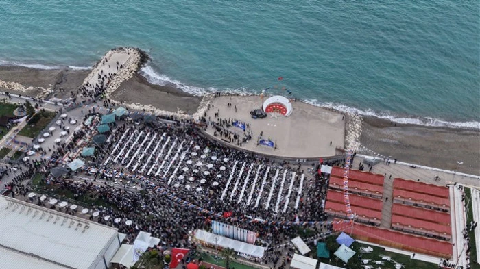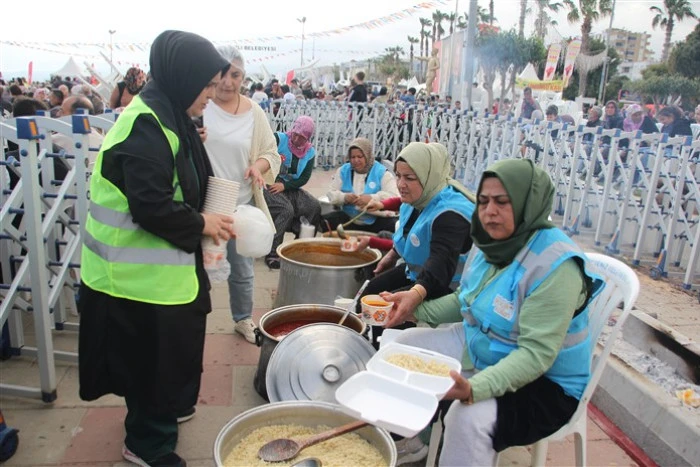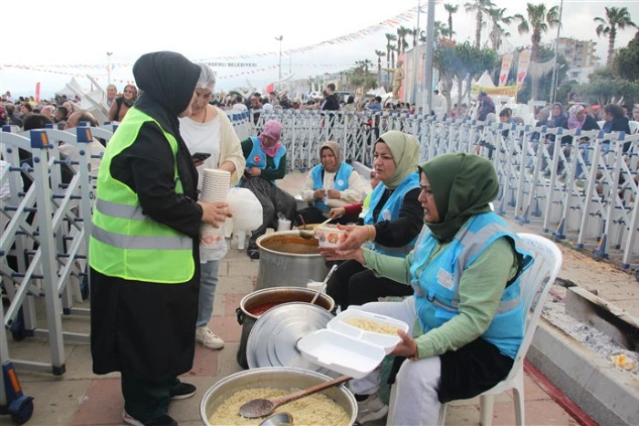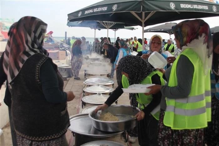 ‘’Erdemli’de birlik ve beraberliği güçlendirmek adına çok anlamlı bir organizasyona imza attık. 71 mahallemizi temsilen 71 kazan kurduk. Bayanlarımızın büyük emeğiyle hazırlanan bu etkinlik, dayanışmanın en güzel örneklerinden biri oldu. Bir hafta boyunca yoğun bir hazırlık süreci geçirdik. Bugün burada bu kalabalıkla buluşmanın mutluluğunu yaşıyoruz. Etkinliğimize katılan yaklaşık 10 bin kişiye ilçemize has Yörük kültünde bulunan ‘kuru fasulye ve tahıl pilavı (keşkek) ikramı yapıldı bu tür birleştirici ve dayanışmayı sağlayan etkinlikler düzenlenemeye revam edeciğiz. Mevlid’i Nebi ve birlik beraberlik programımıza katkı sunan ve alanımızı dolduran tüm Erdemlilire teşekkür ediyorum’’ dedi.
