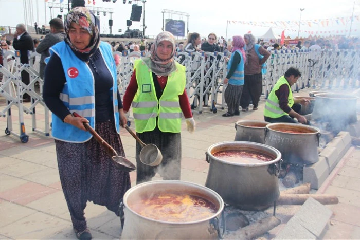 Yemeklerin hazırlanmasında baş aşçılık görevini üstlenen Karayakup Mahallesi’nden Hanzade Taş ise meşakkatli süren yoğun hazırlık sürecine dikkat çekerek, “Bütün kadınlarımızla birlikte büyük bir emek verdik. 71 kazanda yöresel yemeklerimizi hazırladık. Yorulduk ama ortaya çıkan tablo her şeye değdi. Herkesi bu lezzetleri tatmaya davet ediyoruz” diye belirtti.