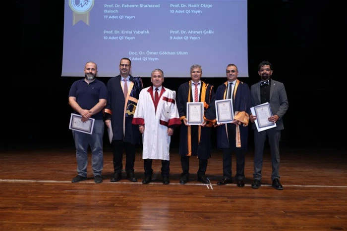 2025 yılında kendi alanında uluslararası atıf endeksinden (SCI) Q1 çeyrekliğinde en çok yayın yapan akademisyenlere belgeleri takdim edildi. Bu kapsamda; Fen Bilimleri alanında Prof. Dr. Faheem Shahzad Baloch (17 yayın), Prof. Dr. Nadir Dizge (10 yayın) ve Prof. Dr. Erdal Yabalak (10 yayın), Sağlık Bilimleri alanında Prof. Dr. Ahmet Çelik (9 yayın), Eğitim Bilimleri alanında ise Doç. Dr. Ömer Gökhan Ulum (5 yayın) ödüllendirildi.