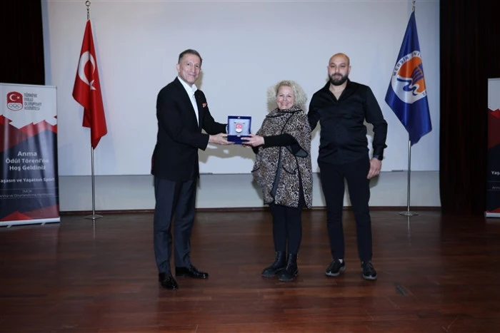 Programın sonunda Mersinli Ahmet’in kızı Dilara Mersinli ve Torunu Murat Mersinli’ye, TMOK Başkanı Ahmet Gülün tarafından ödül takdim edildi.