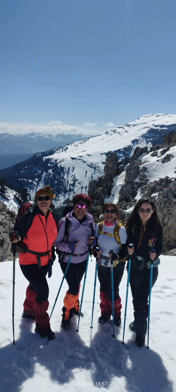 Rotasızlar Grubu sözcüsü ve serbest rehber Süleyman Aslan, bu haftaki yürüryüş rotamızı kadınlarımıza adadık ve Torosların zirvesi olan Aslanköy bölgesindeki 1200 rakımlı Armutalanı bölgesinden Torosların zirvelerinden olan Karyadı bölgsine yani 2370 rakıma çıktık. Kadınlarımızın gününü burada kutladık. Güneşli, sertleşmiş ve batak olmayan karda yürümenin keyfini doyasıya yaşadık.