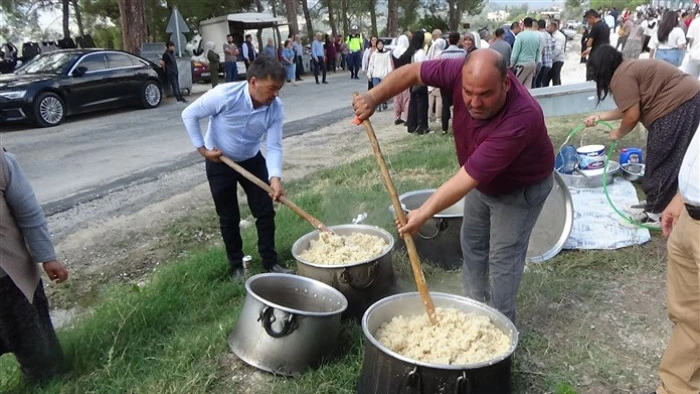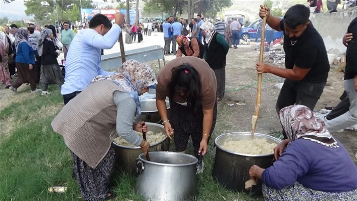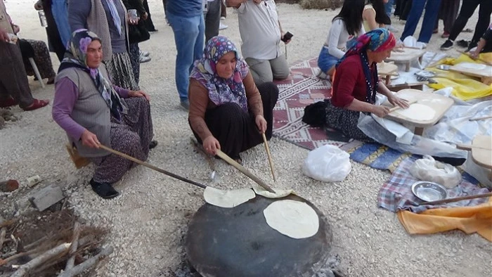 İmece usulü odun ateşinde sıcak saçta bazlama ve börek yapan kadınlar da, misafirleri ellerinden geldiği kadarıyla ağırlamaya çalıştıklarını, yöresel yemekleri misafirlerine ikram ettiklerini ifade ettiler.